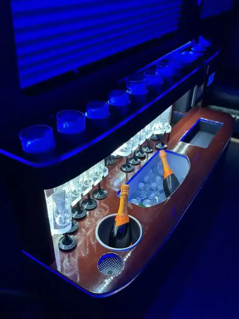 Whether you’re rolling up to a wedding, concert, bachelor/bachelorette party, or corporate gathering, our sleek vehicles are outfitted with plush lounge seating, vibrant lighting, and top-tier audio for a ride as unforgettable as the occasion itself.
